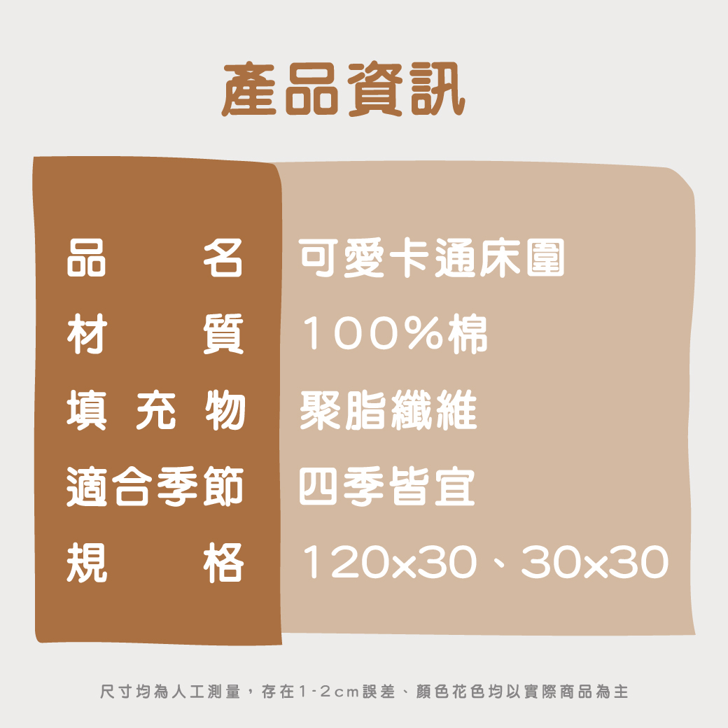 單片尺寸:30X30cm 或 120X30cm,靈活適用於各種嬰兒床尺寸。
